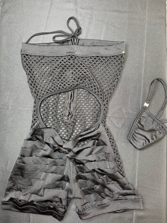 Black Fishnet/Ripped Back One-Piece Exotic Dancer Outfit