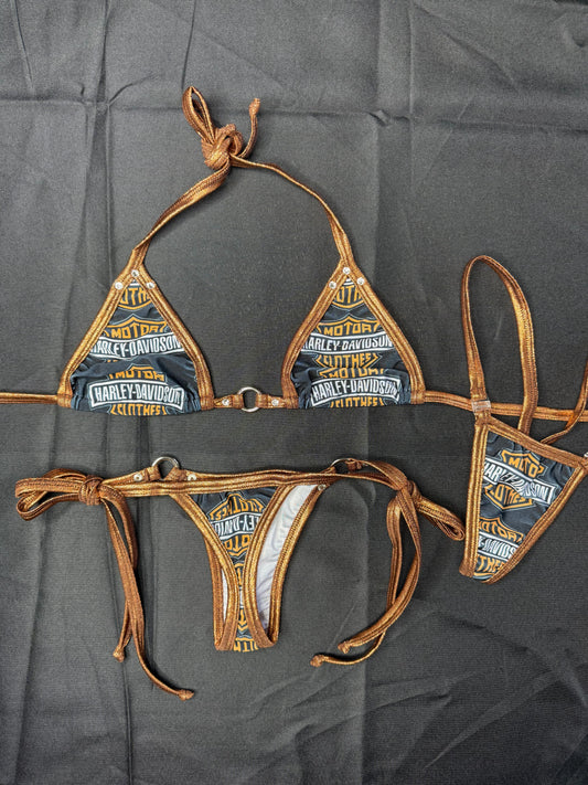 Black Harley/Copper Spandex Two-Piece Bikini Lingerie Outfit