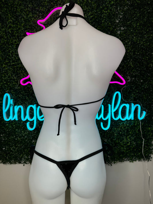 Black Latex Two-Piece Bikini Lingerie Outfit