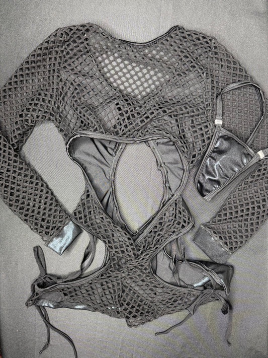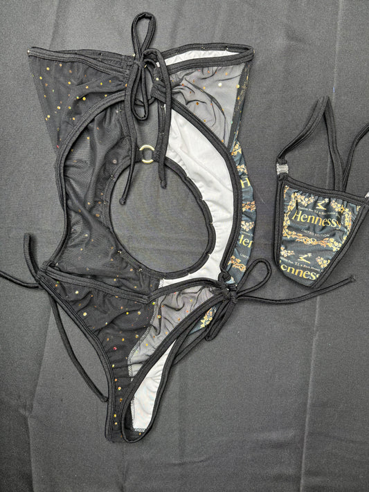 Black Mesh/Silver Sparkle One-Piece Exotic Wear Ripped Back