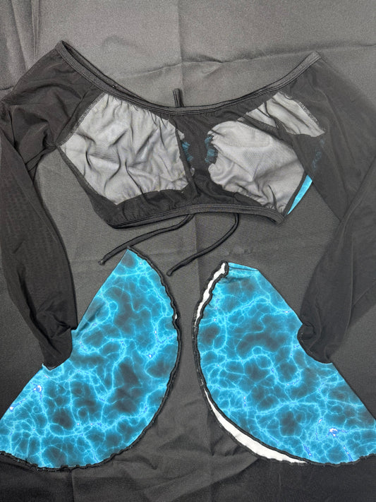 Blue Lightning & Black Fishnet Leg Outfit Exotic Dance Wear