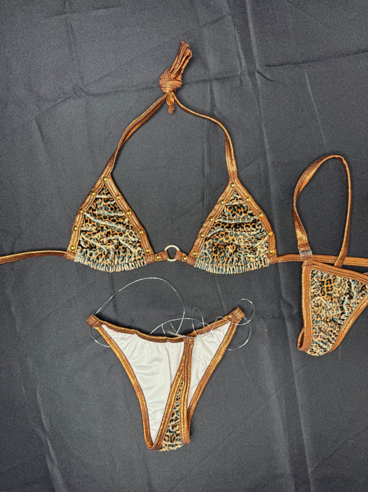Cheetah Print VELVET/Metallic Copper Spandex Two-Piece Bikini Lingerie Outfit