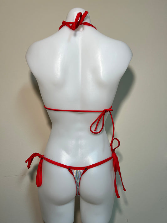 Chrome/Red Bikini Exotic Dance Wear Two Piece Outfit