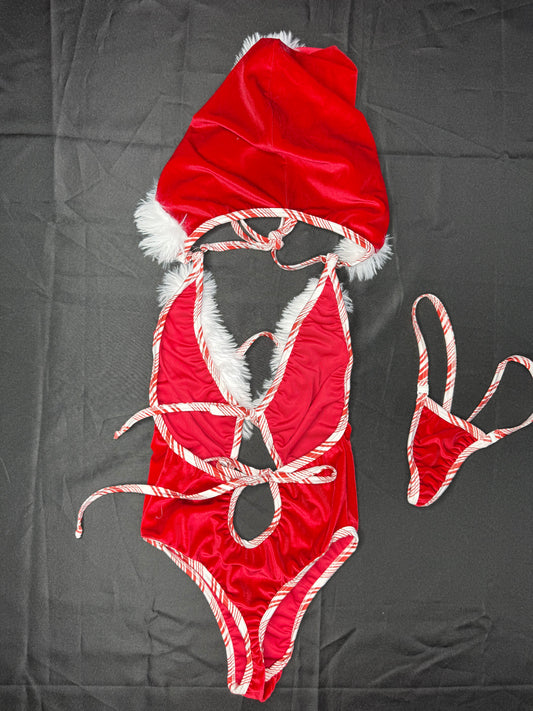 Christmas Candy Cane Hoodie One-Piece Outfit