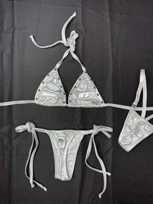 Chrome Two-Piece Micro Bikini Lingerie Outfit