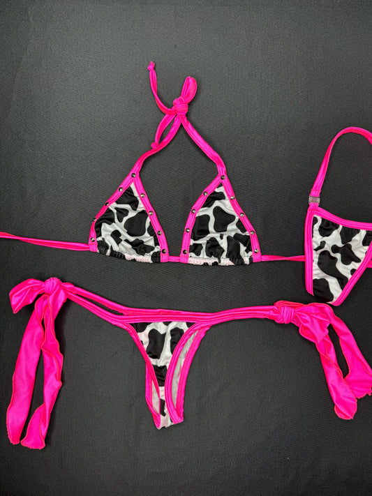 Cow Print/Hot Pink Two-Piece Side-Tie Bikini Lingerie Outfit