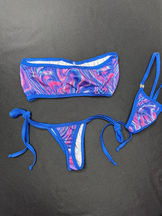 Cosmic Purple/Royal Blue Spandex Tube Top/Side-Tie Bikini Bottoms Lingerie Outfit