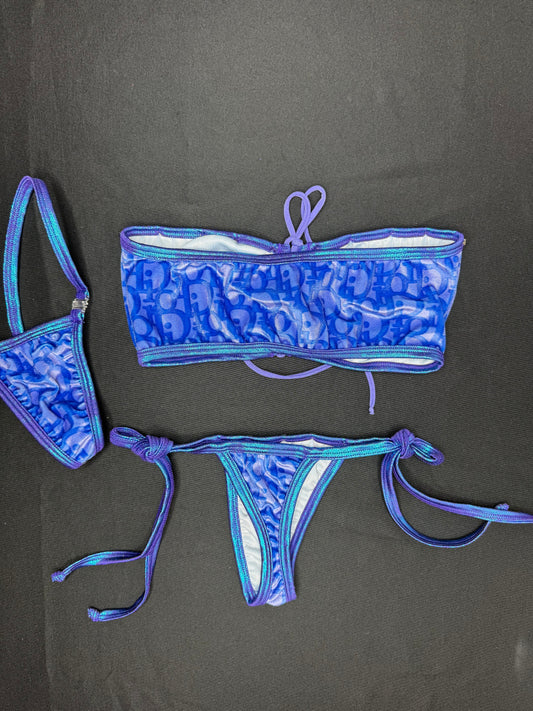 Designer Velvet Purple/Metallic Purple Tube Top/Side Tie Bikini Two-Piece Lingerie Outfit