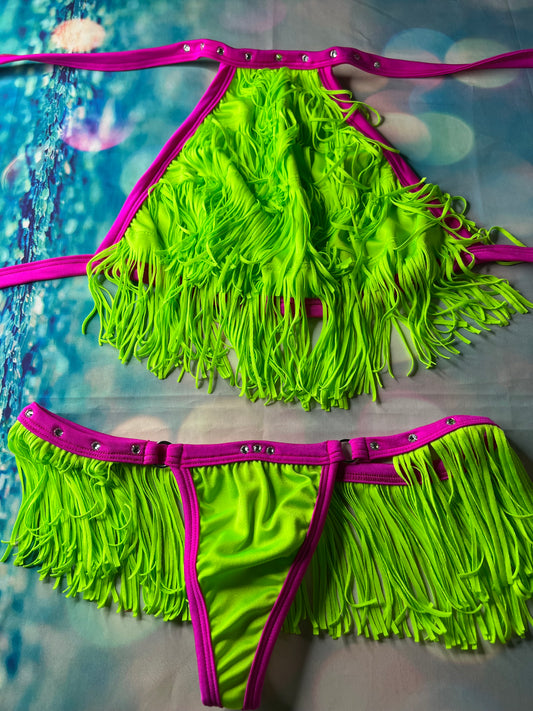 Exotic Dance Wear Fringe Bikini Top & Thong Set