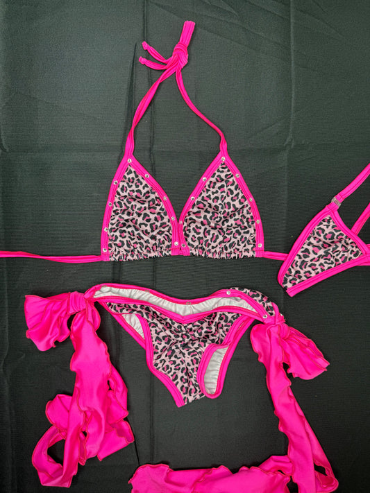 Hot Pink Cheetah Print Spandex Two-Piece Bikini Lingerie Outfit