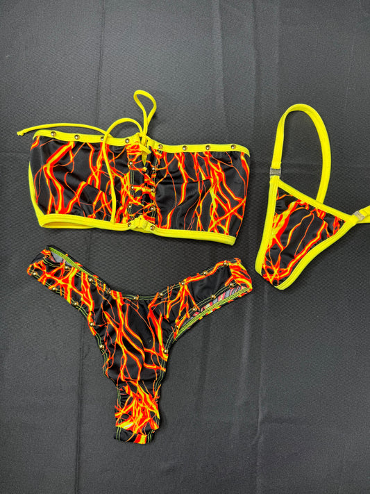 Lightning Green/Orange Tube Top/Thong Two-Piece Lingerie Outfits