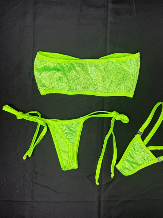 Lime Green/Metallic Green Two-Piece Exotic Dance Wear Bikini