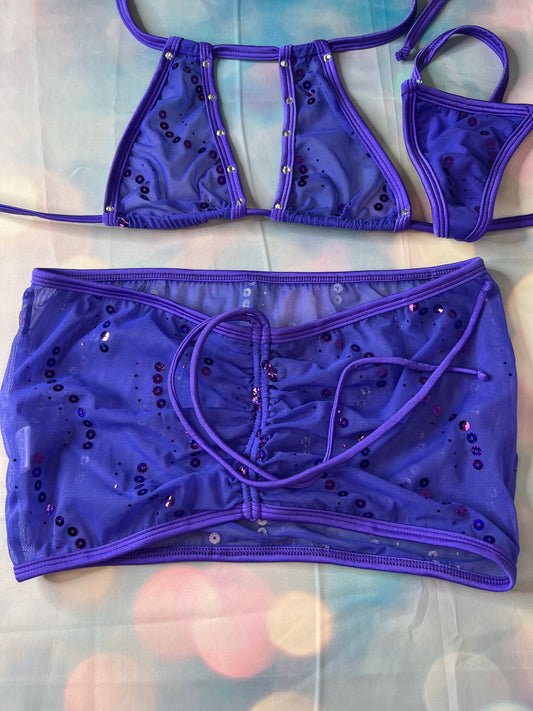 Mesmerizing Metallic Purple Two-Piece Bikini Exotic Dance Wear