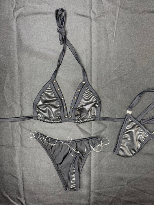 Metallic Black Bikini Top/Shorts Two-Piece Lingerie Outfit