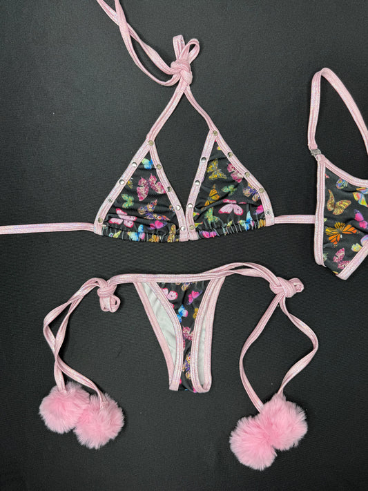 Metallic Baby Pink Designer Bikini Top/Shorts Lingerie Outfit
