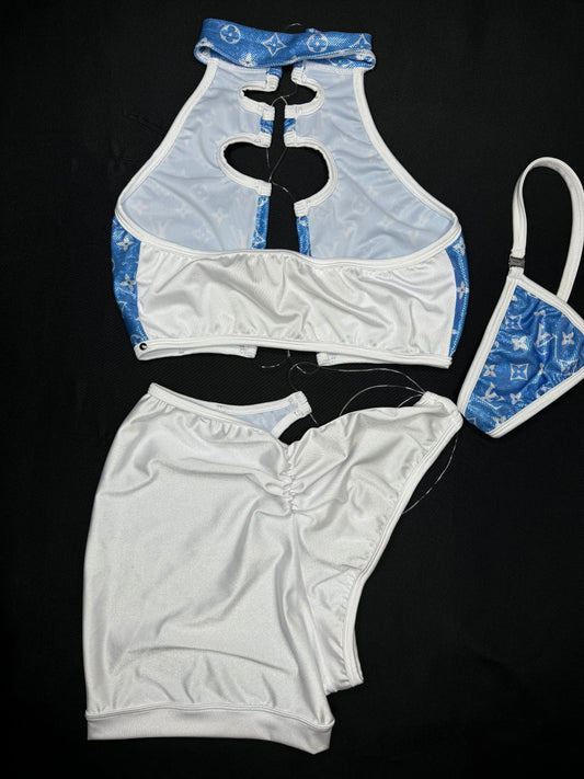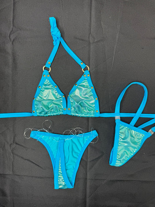 Metallic Baby Blue Two-Piece Bikini Outfit Exotic Dancer Lingerie
