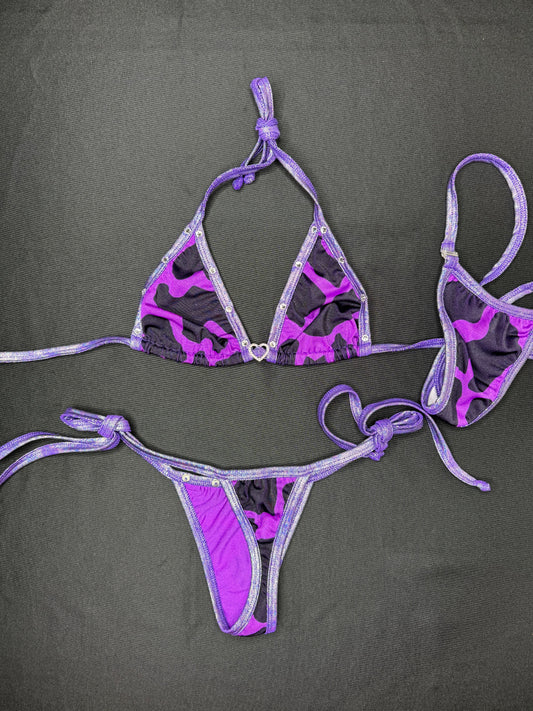 Metallic Purple/Purple Cow Print Two-Piece Side-Tie Bikini Lingerie Outfit