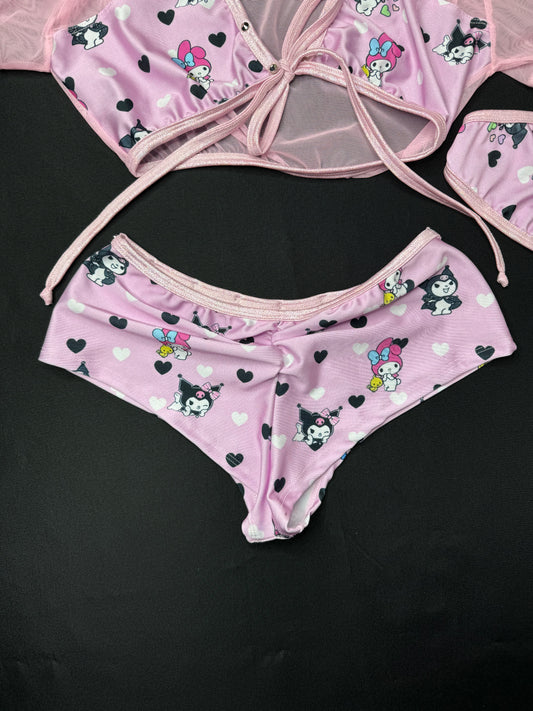 Baby Pink Kuromi Two-Piece Shorts Lingerie Outfit