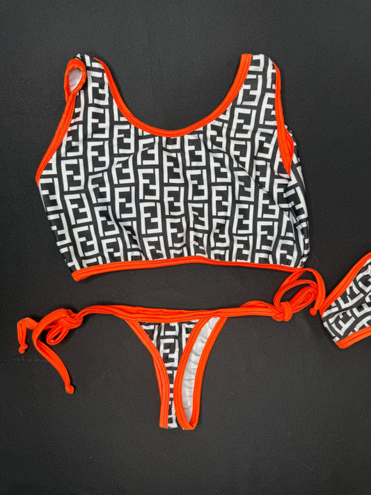 Orange/White Designer Two-Piece Side-Tie Bikini Lingerie Outfit
