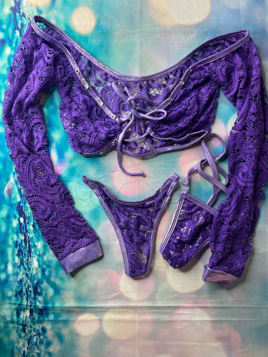 Party Fabric & Black Long Sleeve Leotard Lingerie Outfit