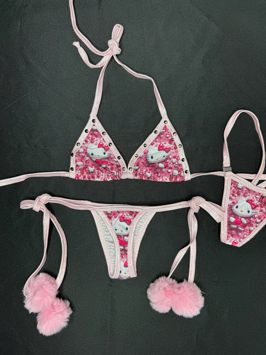 Pink/Hot Pink Kitty Two-Piece Micro Bikini Lingerie Outfit