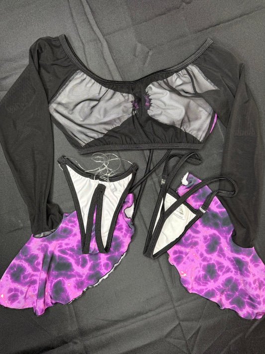 Purple Spandex/Purple Mesh Bikini Top/Skirt Two-Piece Lingerie Outfit