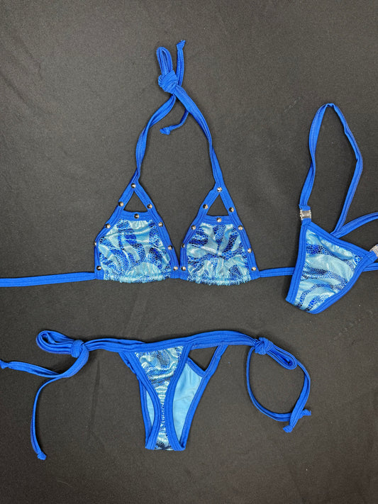 Royal Blue/Metallic Blue Print Two-Piece Bikini Lingerie Outfit