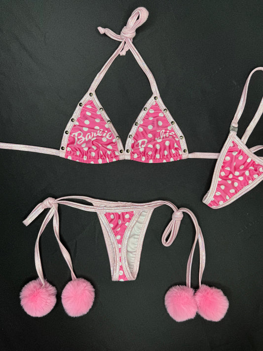 Barbie Baby Pink/Metallic Pink Spandex/Fur Two-Piece Bikini Lingerie Outfit