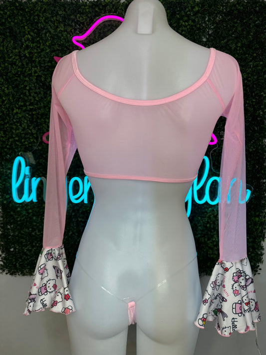 Baby Pink/White Kitty Long Sleeve Mesh Stripper Outfit