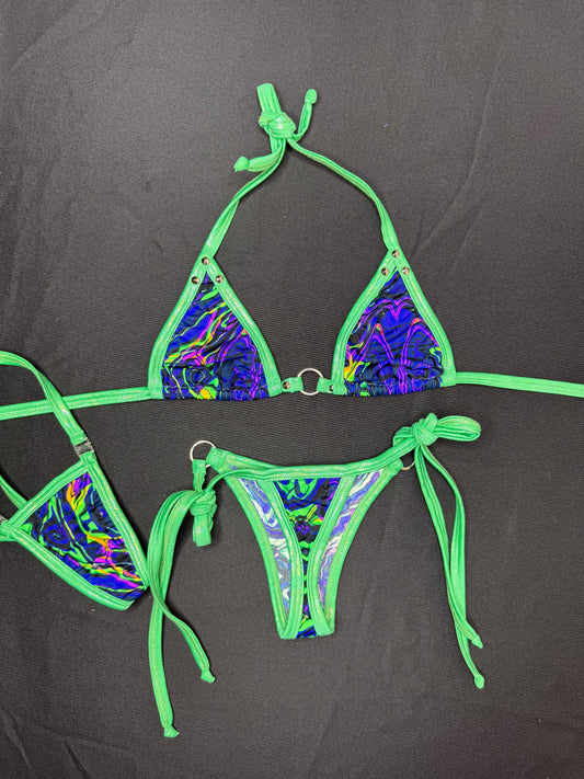 Trippy/Green Spandex Two-Piece Bikini Lingerie Outfit