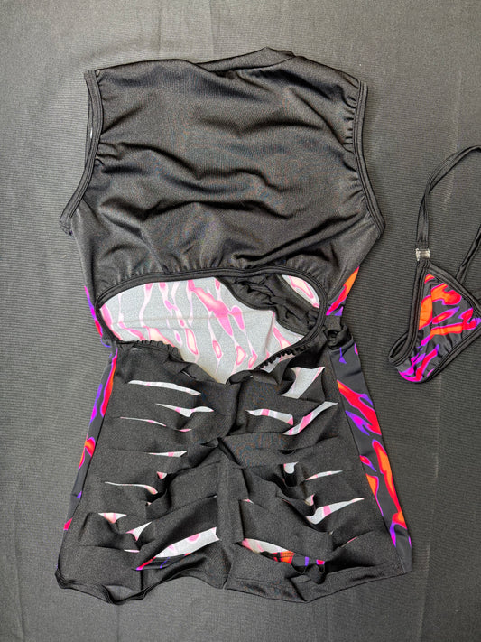 Tie Dye Shatter Glass Hologram One-Piece Lingerie Outfit
