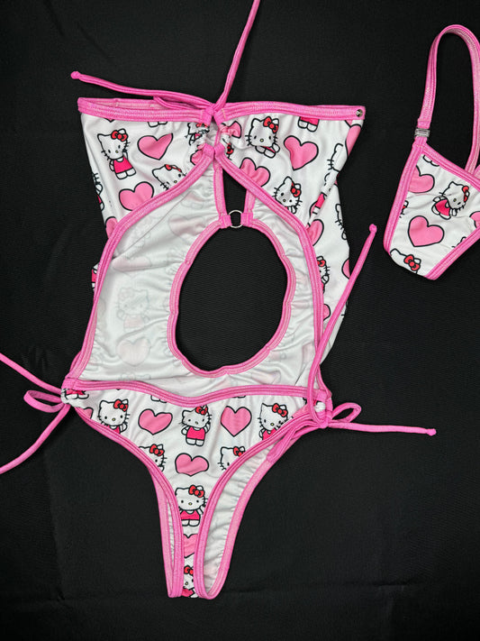 White/Pink Hearts Kitty One-Piece Lingerie Outfit