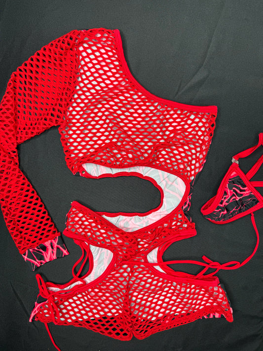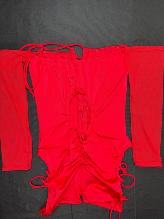 Red/Red Mesh/Spandex One-Piece Lingerie Outfit