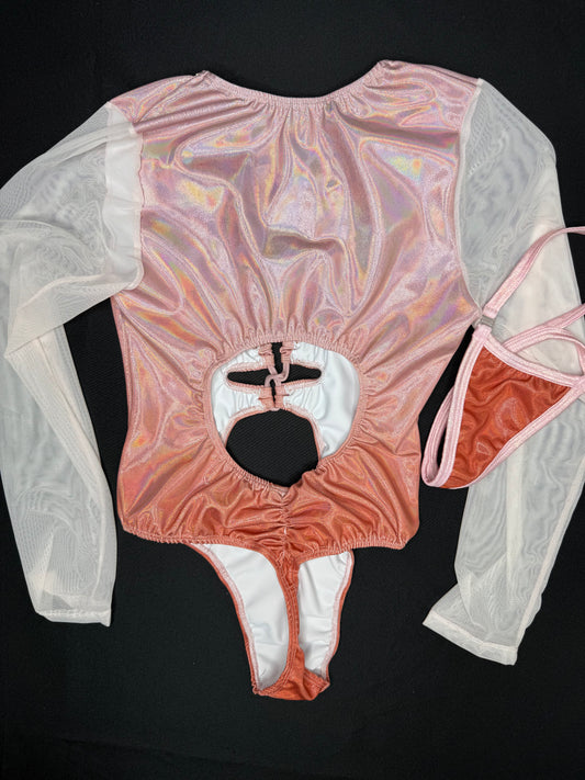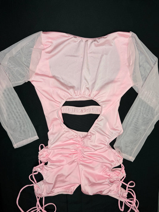 Baby Pink Mesh/Spandex One-Piece Lingerie Outfit