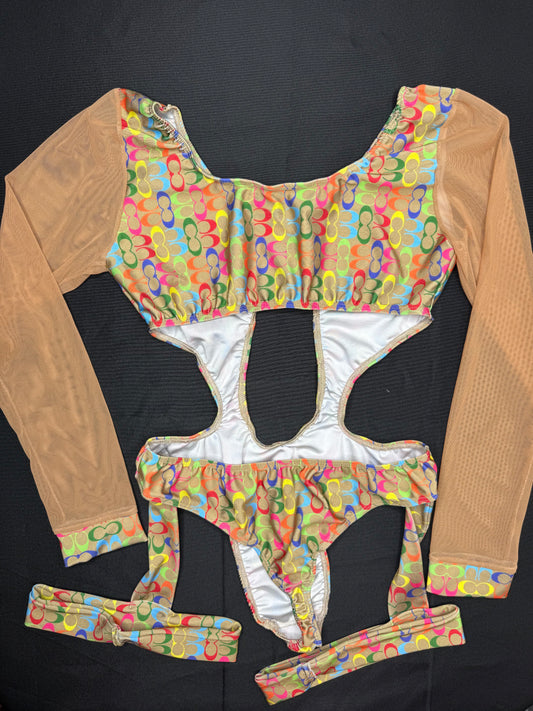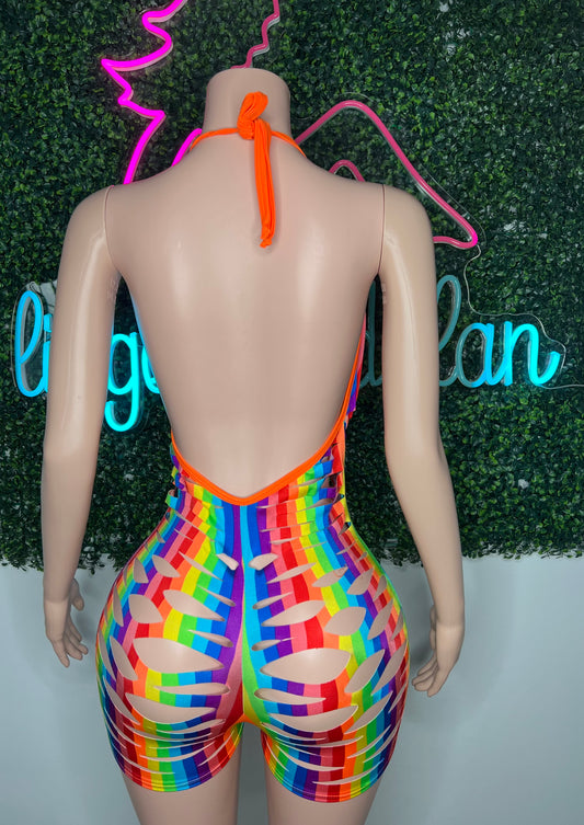 Rainbow Print One-Piece Ripped Back Lingerie Outfit