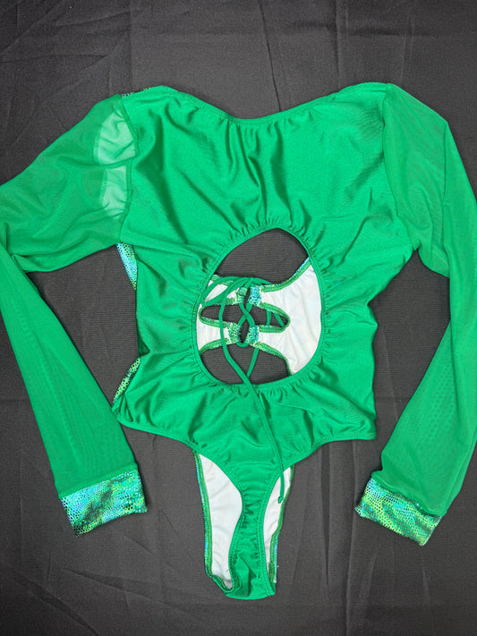Green Animal Print Spandex/Green Mesh One-Piece Leotard Lingerie Outfit