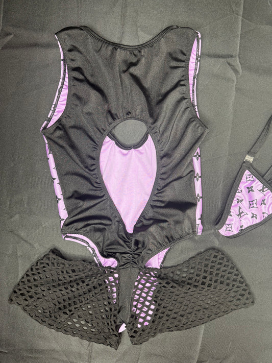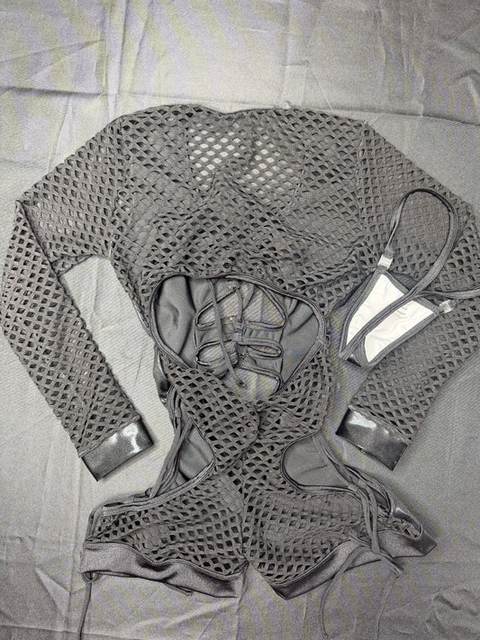 Black Spandex/Fishnet One-Piece Romper Lingerie Outfit