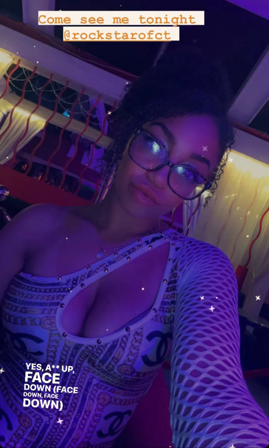 One-Piece Metallic Black Stretch Fabric & Black Fishnet Stripper