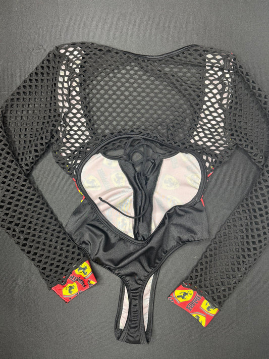Designer Red Spandex/Black Fishnet One-Piece Lingerie Outfit