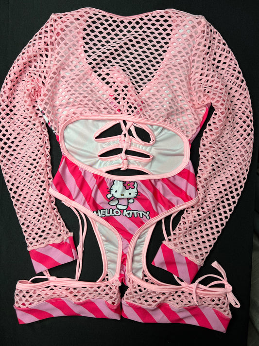 Baby Pink/Pink Kitty One-Piece Romper Lingerie Outfit