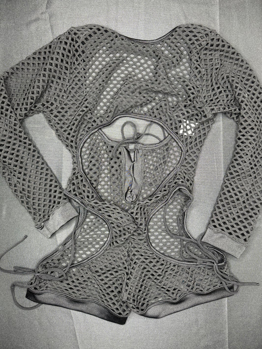 Grey Thunder Fabric One-Piece Romper Lingerie Outfit