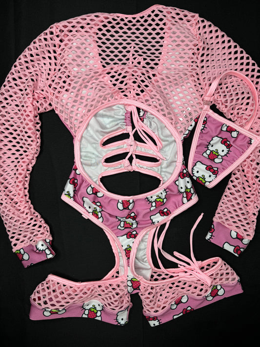 Pink Strawberry Kitty One-Piece Romper Lingerie Outfit