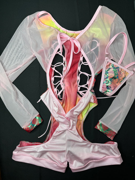 Baby Pink/Fish Scale One-Piece Bartender Outfit