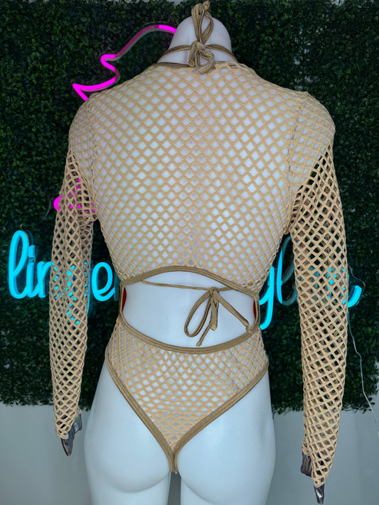 Oil Spill Beige Leotard Lingerie Outfit