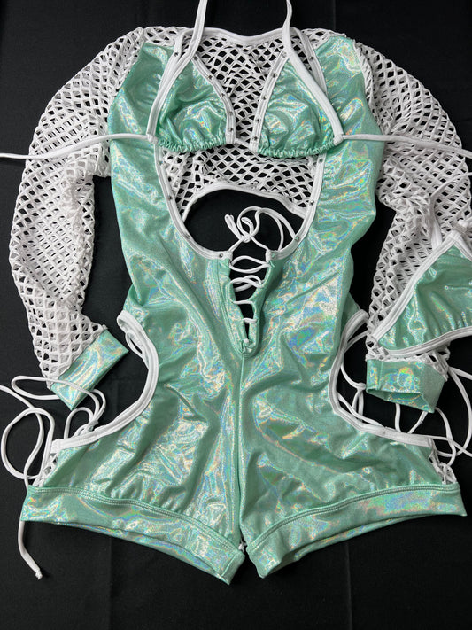 Mint/White Lingerie Romper Stripper Outfit