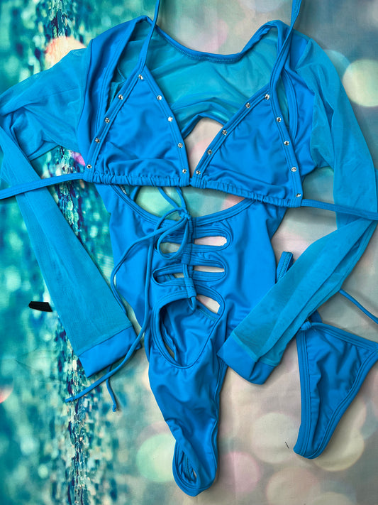Exotic Dance Wear Baby Blue Romper Outfit Lingerie Sexy