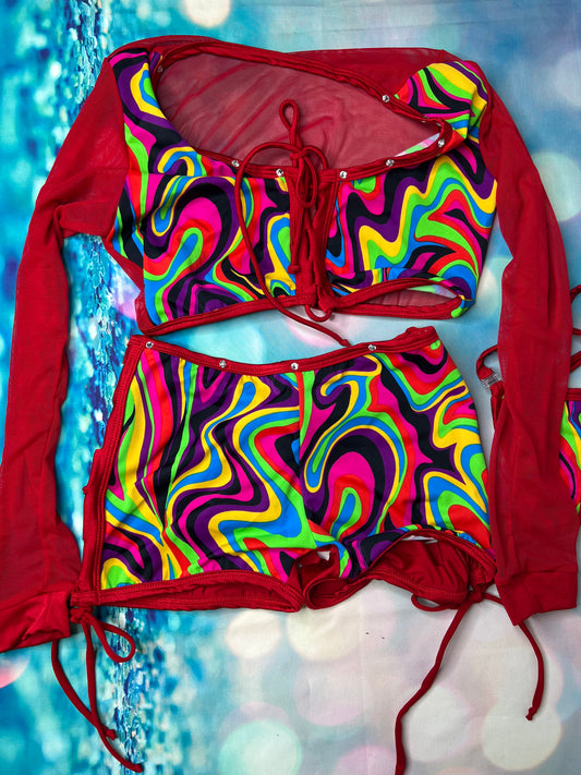 Exotic Dance Wear Two-Piece Outfit Set - Bold Stripper Attire