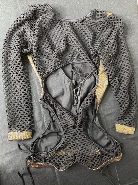 Party Fabric & Black Long Sleeve Leotard Lingerie Outfit