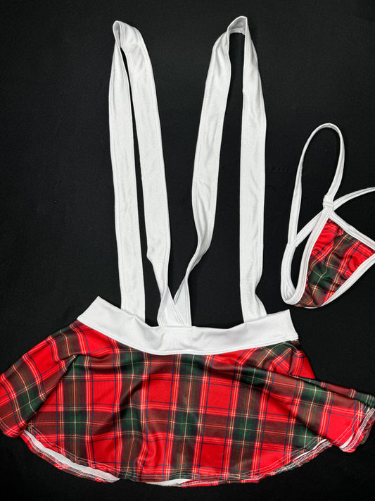 Red Plaid Two-Piece Skirt Suspenders Christmas Lingerie Outfit