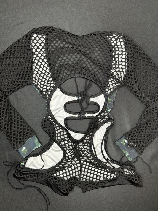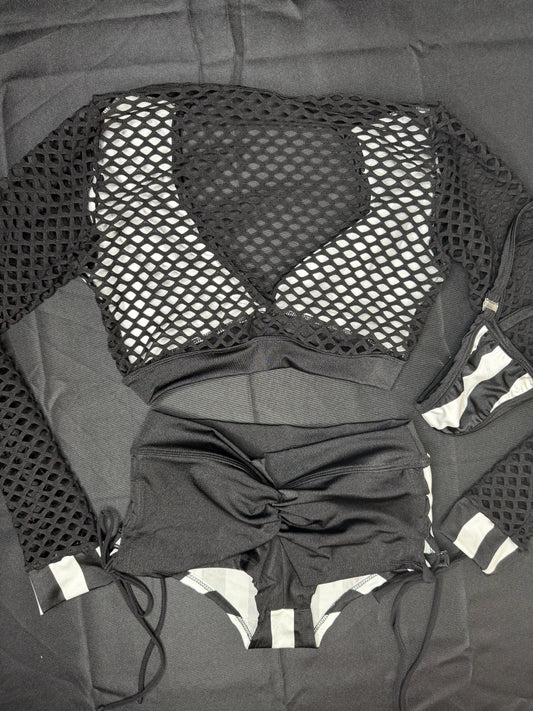 Referee Black/White Spandex Long Sleeve/Shorts Two-Piece Lingerie Outfit